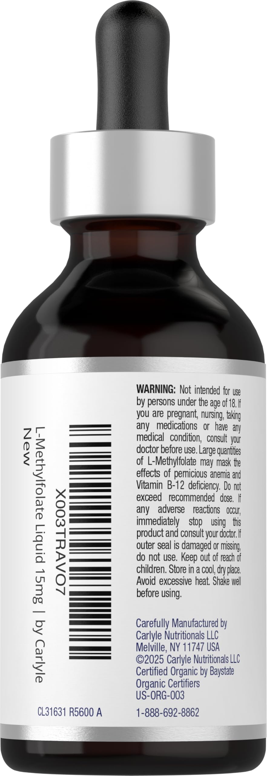 Carlyle L Methylfolate Drops 15mg | 2 Fl Oz | with Organic Glycerin | Mixed Berry Flavor | Vegetarian, Non-GMO, Gluten Free Supplement