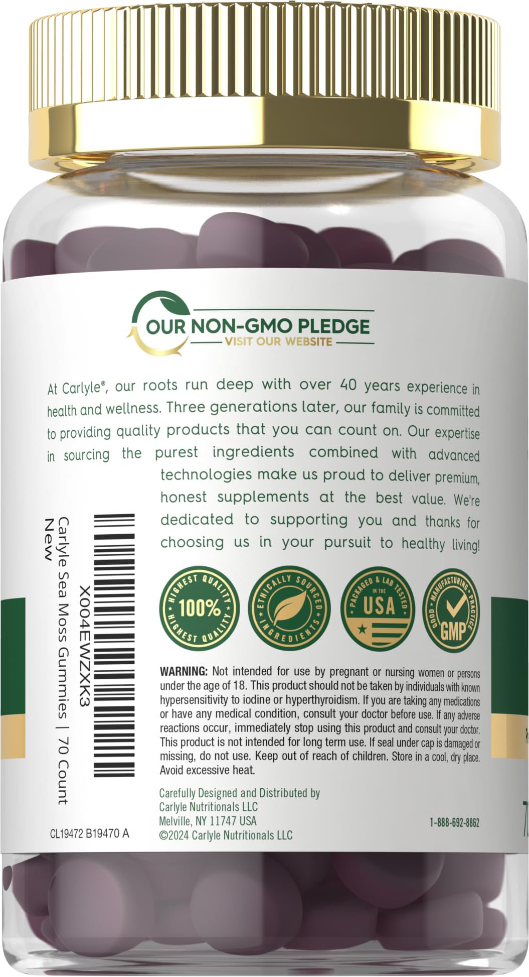 Carlyle Sea Moss Gummies | 70 Count | Strawberry Blueberry Flavor | Vegan, Non-GMO, Gluten Free Supplement